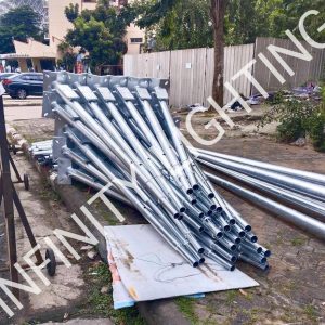 ผลงาน งานเสาโพสท็อป สูง 6 เมตร กิ่งเดี่ยวสั้น ชุบกัลวาไนซ์ และ งานเสาโพสท็อป สูง 8 เมตร วงแหวนสำหรับยึดฟลัดไลท์ 6 โคม ชุบกัลวาไนซ์