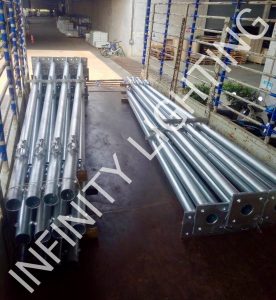งานเสาโซล่าเซลล์ 3 สูง 4 เมตร กิ่งเดี่ยว พร้อมซัพพอร์ตรับแผงชุบกัลวาไนซ์ พร้อมโคมถนนโซล่าเซลล์ 40W