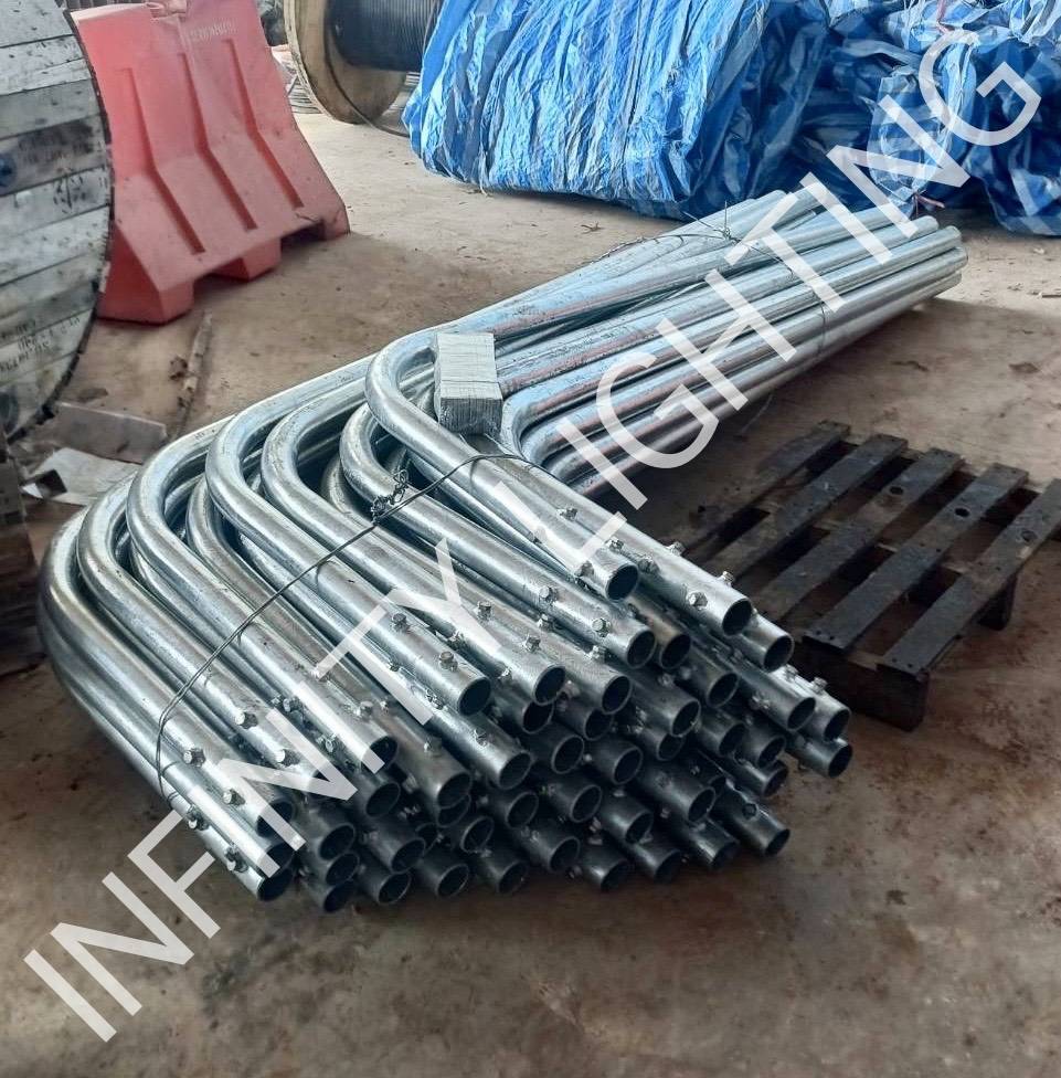 งานเสาไฟถนน สูง 6 เมตร กิ่งเดี่ยว ชุบกัลวาไนซ์ พร้อมโคมถนน LED 100W 6500K