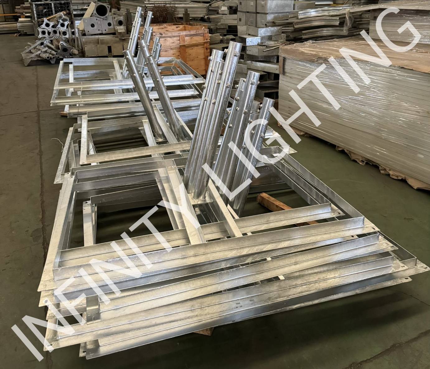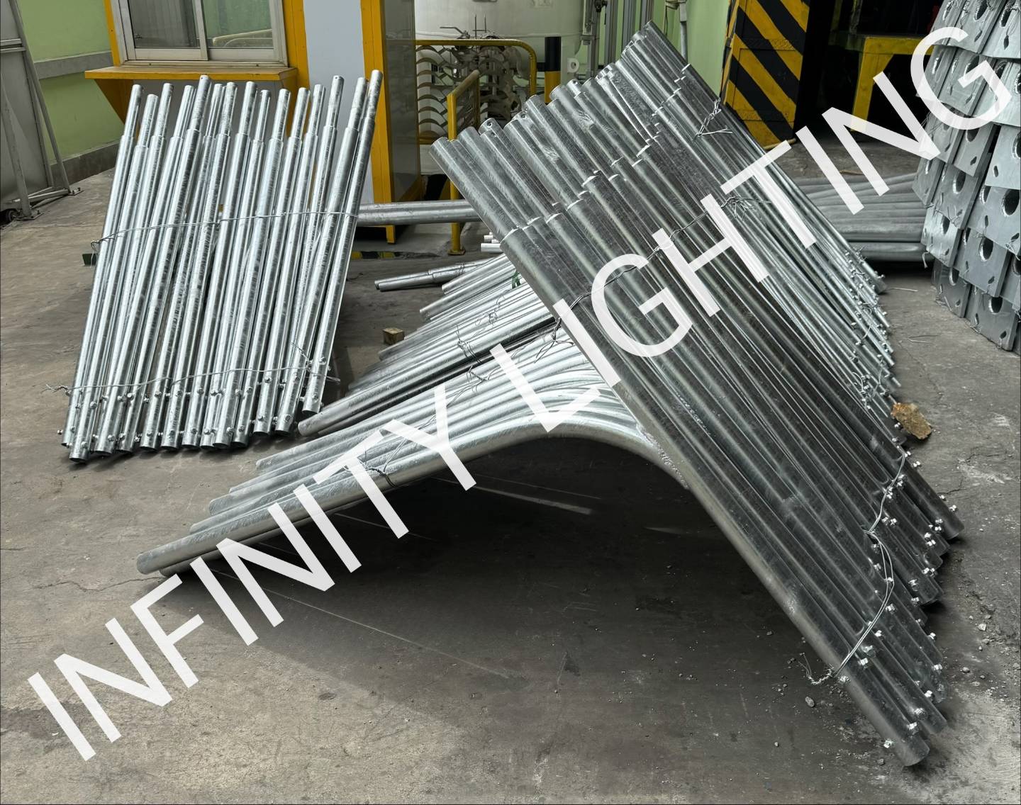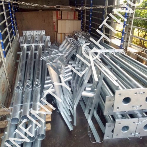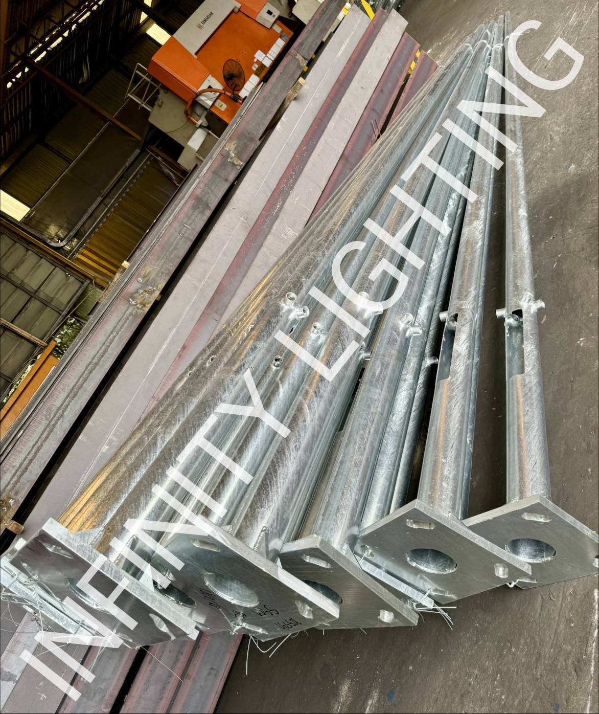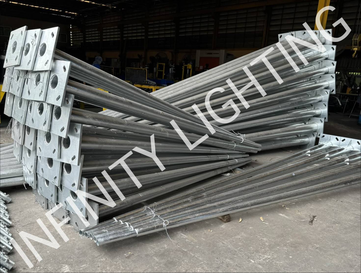 งานเสาไฟโซล่าเซลล์ สูง 6 เมตร กิ่งเดี่ยว พร้อมซัพพอร์ตรับแผง ชุบกัลวาไนซ์