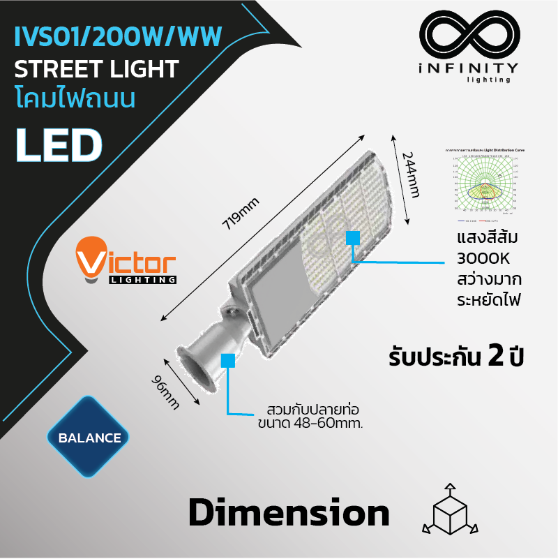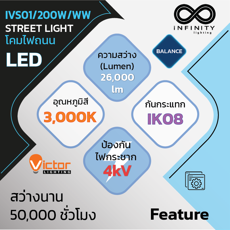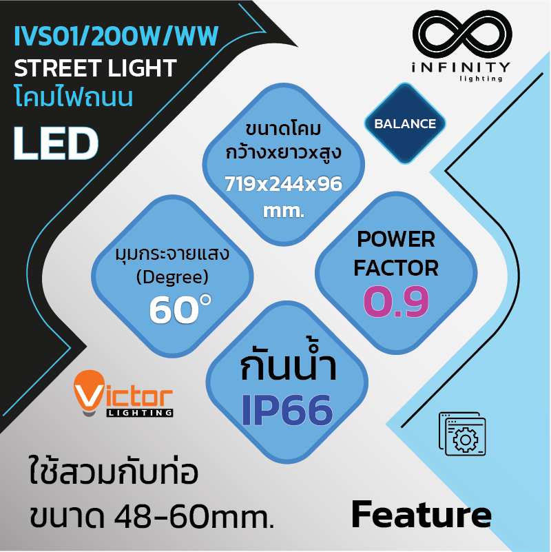 โคมไฟถนนรุ่น Model : IVS01/200W/WW (VICTOR)