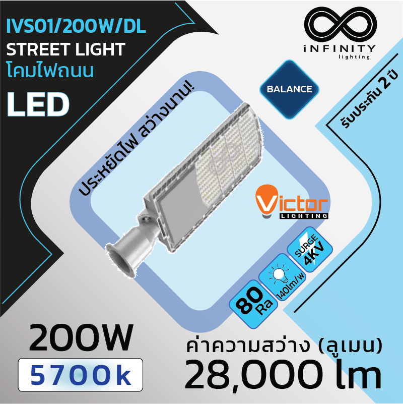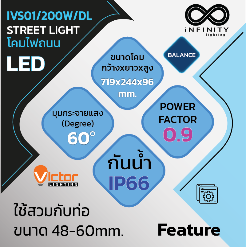 โคมไฟถนนรุ่น Model : IVS01/200W/WW (VICTOR)