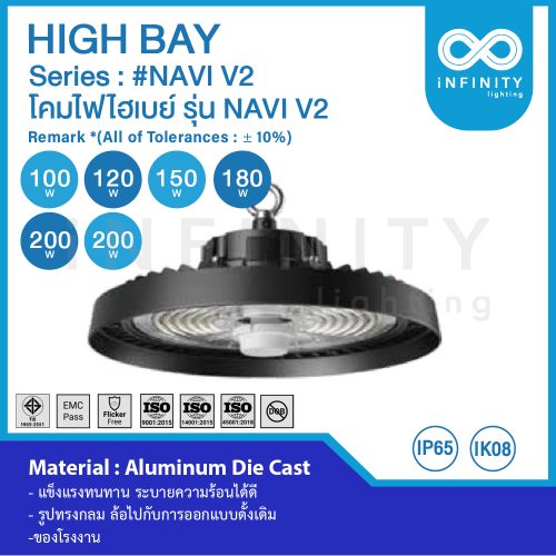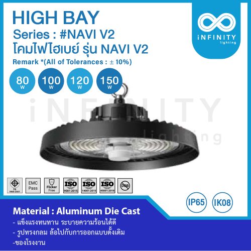 ความสว่าง Luminaire Flux (Lumen) : 850lm, 1,700lm, 2,550lm, 4,250lm, 5,950lm, 8,50 0lm,และ 30,000lm