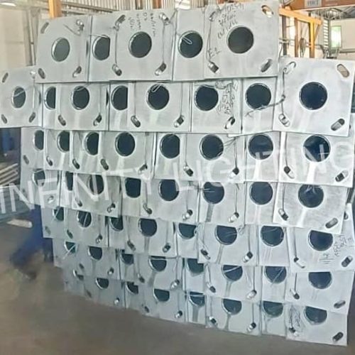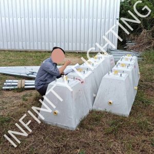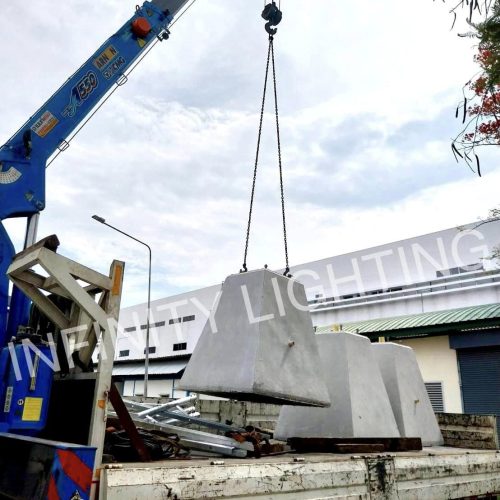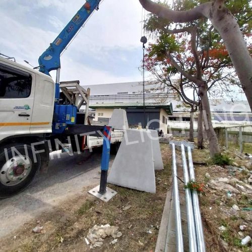 งานเสาไฟถนน สูง 4 เมตร กิ่งเดี่ยว ชุบกัลวาไนซ์ พร้อมตอม่อฐานรากเสาไฟขนาด 300×600×600mm. ระยะน็อต 200mm.