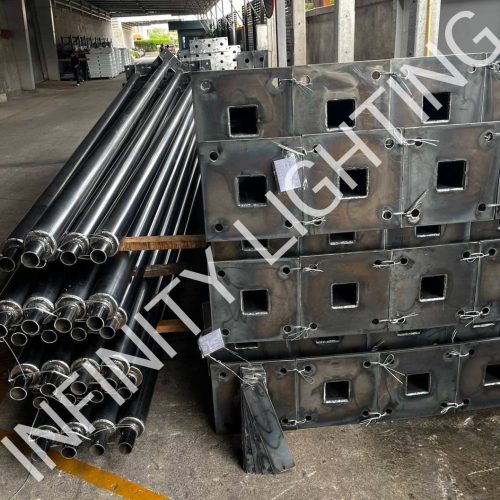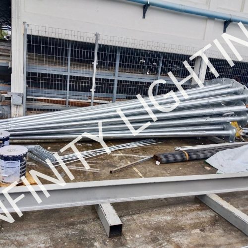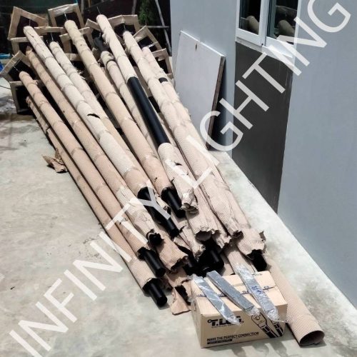 งานเสากลม 3.5 สูง 4 เมตร ไม่มีกิ่งปลาย 2 ชุบกัลวาไนซ์+พ่นสีดำด้าน