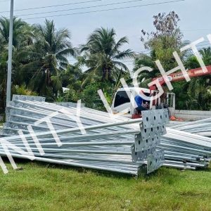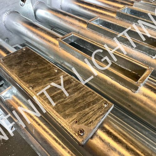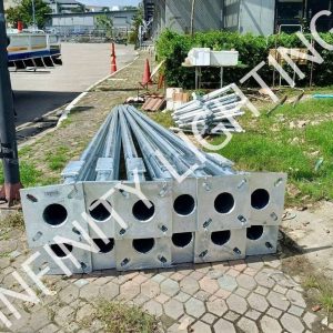 งานเสาโพสท็อป สูง 6 เมตร และ 7 เมตร พร้อมกิ่งสำหรับยึดป้าย + Service door กันน้ำ ชุบกัลวาไนซ์ (ตามแบบลูกค้า)